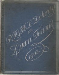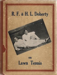 025: “R.F. & H.L. Doherty on Lawn Tennis”; 1st UK edition of 1903 in broad blue hardboards with 146 pages. The Dohertys were at their prime at this period, winning multiple Wimbledon Singles and Doubles titles. They were major public figures, and the crowds flocked to their matches at Worple Road. This is their combined coaching wisdom and it is illustrated with heavily posed photos of them and other great stars demonstrating the shots. Internally there is a rather louche tipped-in photo of the brothers. The book is in very good condition rather darkened externally. (See photo) £350/US$700 026: With this copy is a very early Trim photo of H.L. Doherty signed in pencil by him on the reverse, dated 20/6/08. And a rare edition of an Ogden’s Guinea Gold Cigarettes photocard of R.F. Doherty. The two are offered together as one lot. £275/US$550 027: “R.F. & H.L. Doherty on Lawn Tennis”; reprinted edition of 1932 in larger hardboards format with their photo tipped onto the external front cover, and with 87 pages. This reprint is exceptionally rare and I am not really sure of why it was reprinted so many years after they had both died. This edition does not contain all the text of the 1st, and restricts itself to just the coaching elements. This copy is ex-lib, but very discreetly, and externally the front cover is darkened and corners rubbed. £150/US$300 LAWN