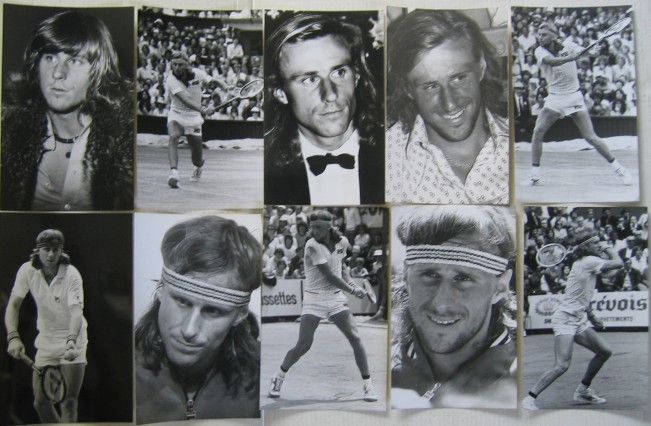 TENNIS 083: “Bjorn Rune Borg Postcards x 10”; a very nice selection of 10 original postcard size black and white photos of Bjorn Borg on and off the court, at varying ages (See below). £20/US$40