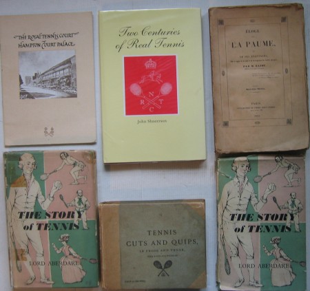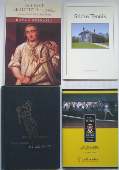 I try to ensure that all books are presented in as near as is possible to their original condition, save for the usual stress placed on the older books because of their already long life. Where there are obvious deficiencies, these are described. The following details are quite short. Further information and photographs of any of these titles are available. Many of the items on this list are illustrated with photographs. (P). For more information on Real Tennis in general, click here NEWS * The Boomerang Cup was played at the Royal Melbourne Tennis Club in mid-January, and teams from most of the Tennis clubs in the world took part. Petworth House Tennis Court sent two teams and we engaged in an almost daily series of high pressure handicap doubles matches in 90 degrees of heat. The Tennis seemed non-stop from 8 in the morning till 8 at night. We managed to engender a huge team spirit, but did not do as well as we had hoped. But it was a wonderful three weeks of cricket, golf (don’t tread on the snakes!), tourism and of course tennis, both lawn and real. Some of us were guests at the Australian Open. We are hugely indebted to our Australian hosts and organisers, and already we are planning our campaign for 2009!