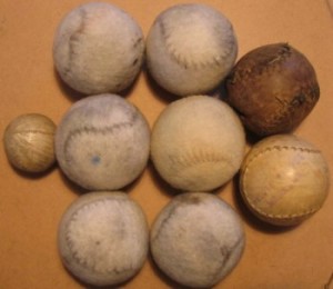 67: “6 old, solid and hand stitched Real/Court Tennis balls with a white cloth”. I am not sure if any clubs still use white cloth, as opposed to yellow (P). 68: “Leather bound ball” stitched with broad cord, probably for a form of European ball play such as Pelote, Pallone etc. (P) 69: “Pelote Basque Ball” stamped “Pelote Basque Merkina”; made of white leather or skin, hand stitched with quite coarse thread. I can’t put a date on this but will guess 1950s. (P) 70: “Old Rackets/Racquets Ball”; this ball seems to be a Rackets/Racquets ball which is covered in quarters with 4 lines of hand stitching. It is solid cored, and I date it at some time in the 1930s. (P) A STUNNING HALL-MARKED SILVER MCC REAL TENNIS PRIZE 1914 71: “MCC Silver Plaque”: this is a beautiful little English silver hall-marked (London 1913) plaque inscribed “J F Marshall 1914”. That year, the record shows Marshall won the MCC Gold Racquet Cup and I guess this plaque may have been removed from a trophy, as it is slightly bowed and has 4 tack fixing points. Its maximum dimensions are 6.5cm tall and 4.5 cm wide. It contains the MCC crest, crossed real tennis rackets with 4 balls; and it is in excellent condition. £350/US$60 ORDERS